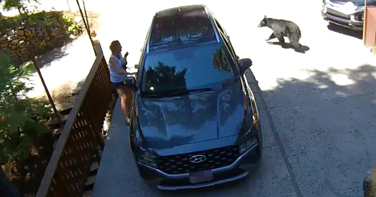 Kalifornia, Homewood – Egy szokatlan és megdöbbentő eset tanúi lehettek az arra járók, amikor egy nő a garázsához indult, és váratlanul egy fekete medve mászott ki az autójából. A szituáció csak egy biztonsági kamerának köszönhetően vált nyilvánossá, amely rögzítette az eseményeket. Ahogy a nő kilépett házából a garázsfeljáróra, egy autó dudált, ekkor jött a medve, amely a letekert ablakon át mászott ki az SUV-ból.